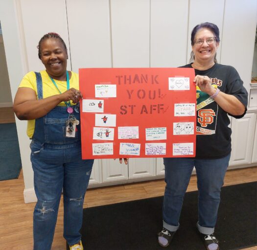 This month was our first annual Chicktime Carnival. Complete with popcorn, games and prizes. The kids had fun playing and winning. We also made a thank you poster for all the wonderful staff Saint John’s Program for Real Change