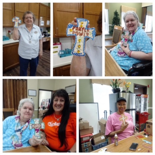 March activities at Brookdale South decorating bling bling crosses! We had so much fun that we forgot to take pictures until the end and some people were already gone. It was fun! ????????????