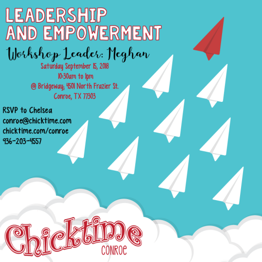 -Chicktime Conroe will create an invitation for your event. It is important that you organize your programs as early as possible so that we get the invitation out to the public. Ideally, we would like that information 1 months prior to your event. Your Leader Co-Host will be in contact with you to get the specifics needed to create the invitation. Our invitations are sent out on the 1st of each month so please make sure you have given you Leader Co-Host a general idea of what your workshop ideas are in time for the invitation to go public.