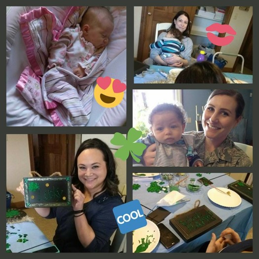 Everyone had fun making decorations to bring the luck o’ the Irish to friends & family~ And we have a brand new baby girl to celebrate at Fontebella!! We get so excited when we get to snuggle another baby. Thank you to our active duty chick (& Peanut’s bff) for the incredible & generous donations to the new mommies. So amazing!!!! Thank you to all that support Chicktime St Louis & Fontebella.