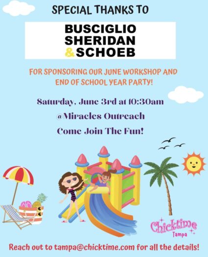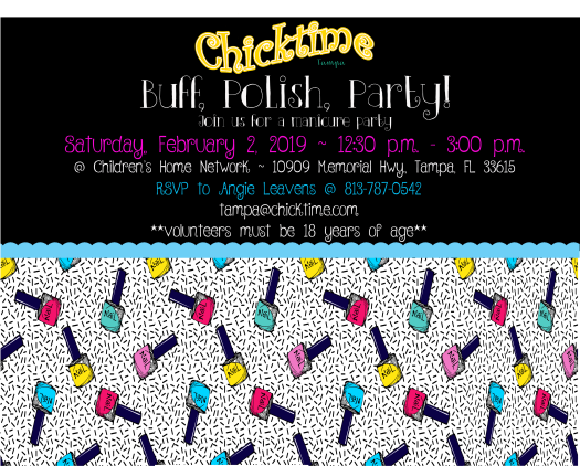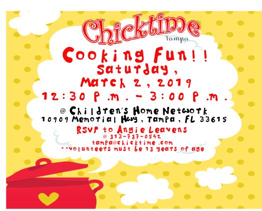THANK YOU again to all of our contributors and volunteers for helping us get Chicktime Tampa off to a great beginning. We are so excited for all that next year has in store for us and the kids at the Children’s Home Network. We would not be able to serve the way we do without YOUR help!